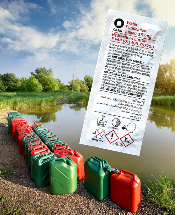 위기 상황하에서 안전한 식수를 위한 먹는 물 소독제로 공식 추천되었습니다.