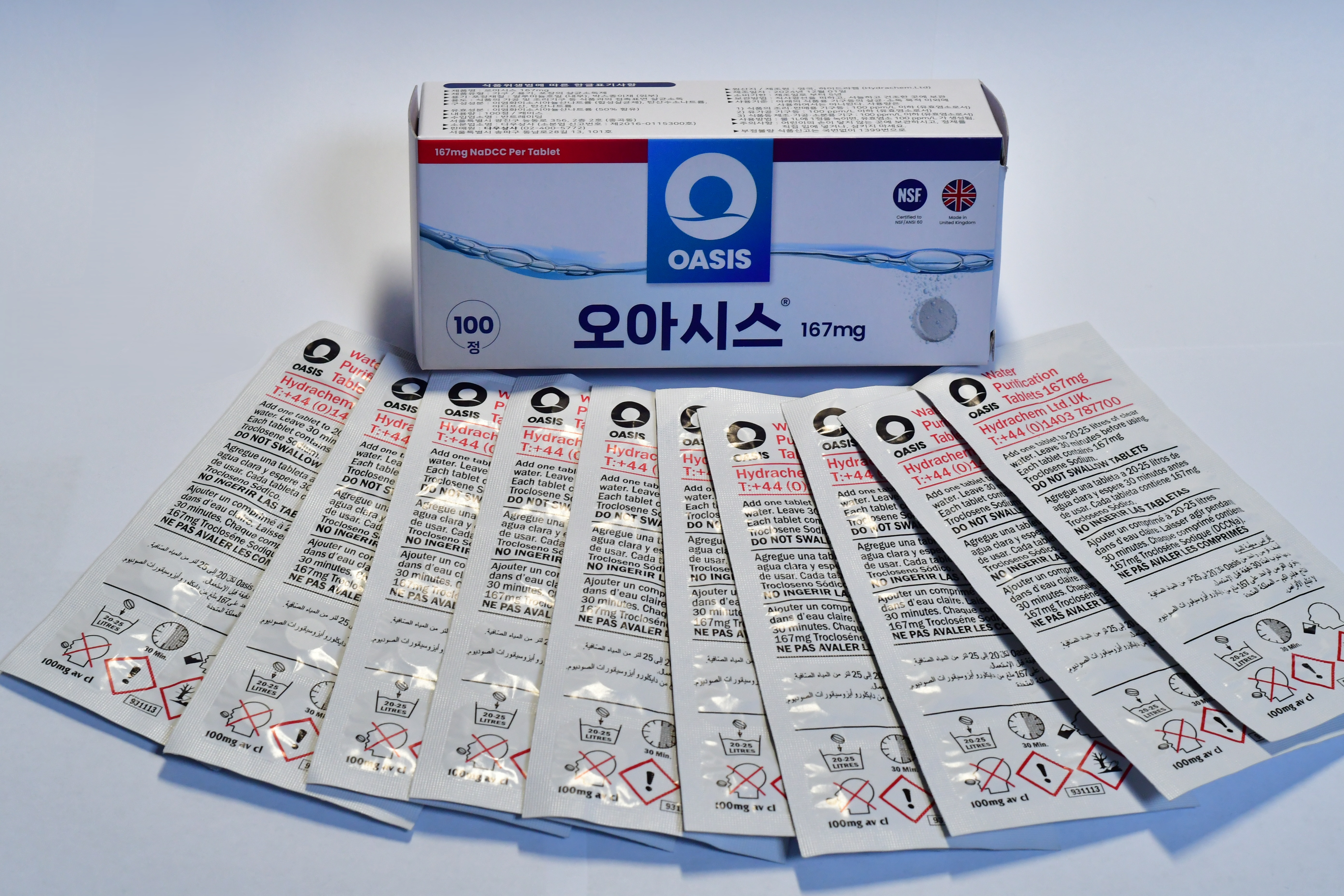 오아시스167mg은 간편한 발포정 타입으로 물에 넣으면 빠르게 용해되어 균일한 농도의 소독액을